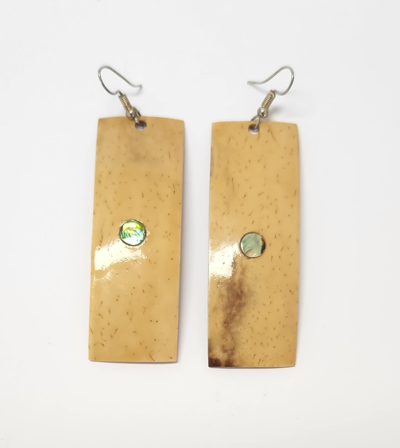 CREAM RECTANGLE CARVED COCONUT DESIGN STATEMENT EARRINGS