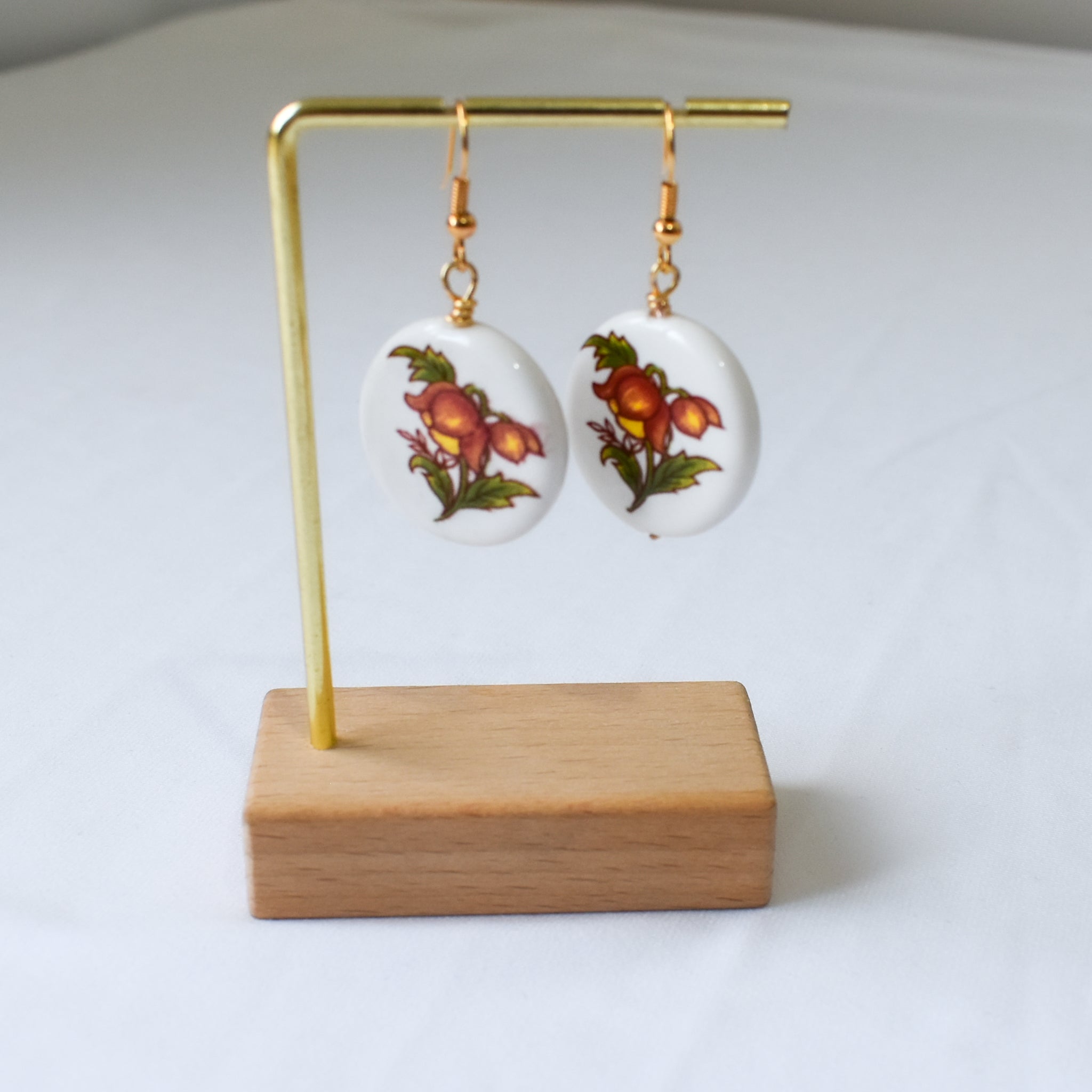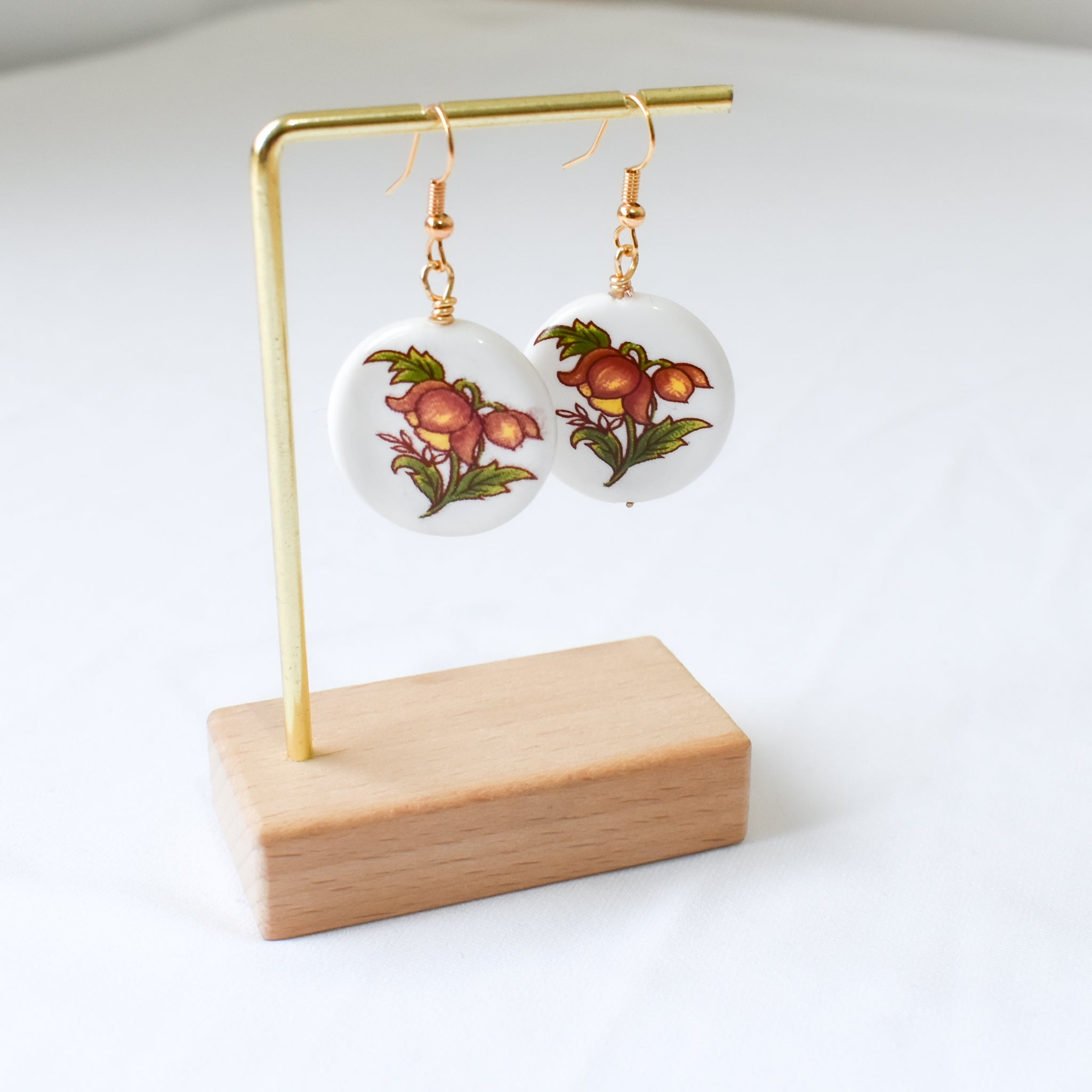 DELLA EARRINGS - White Bead with Floral Pattern Earrings