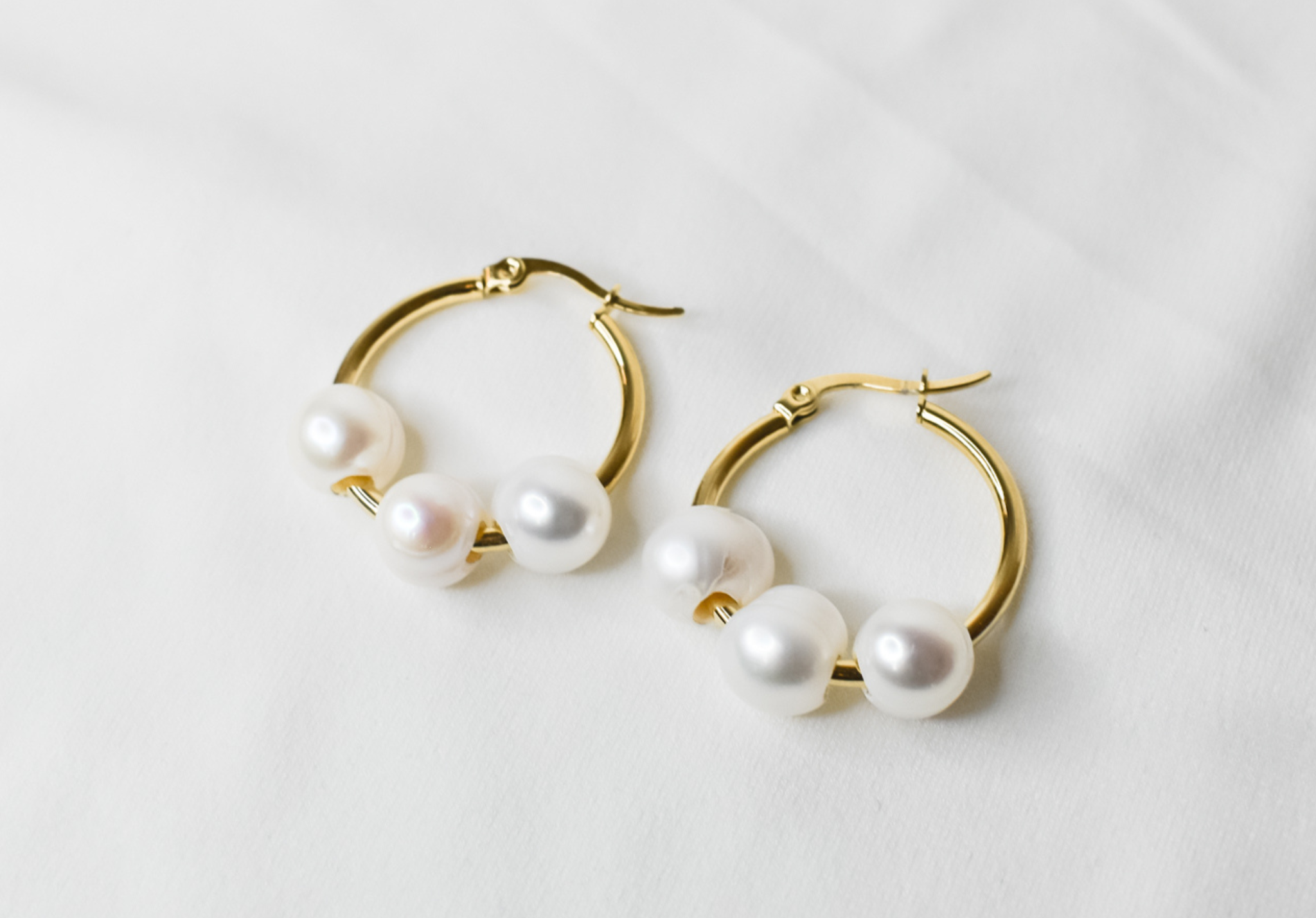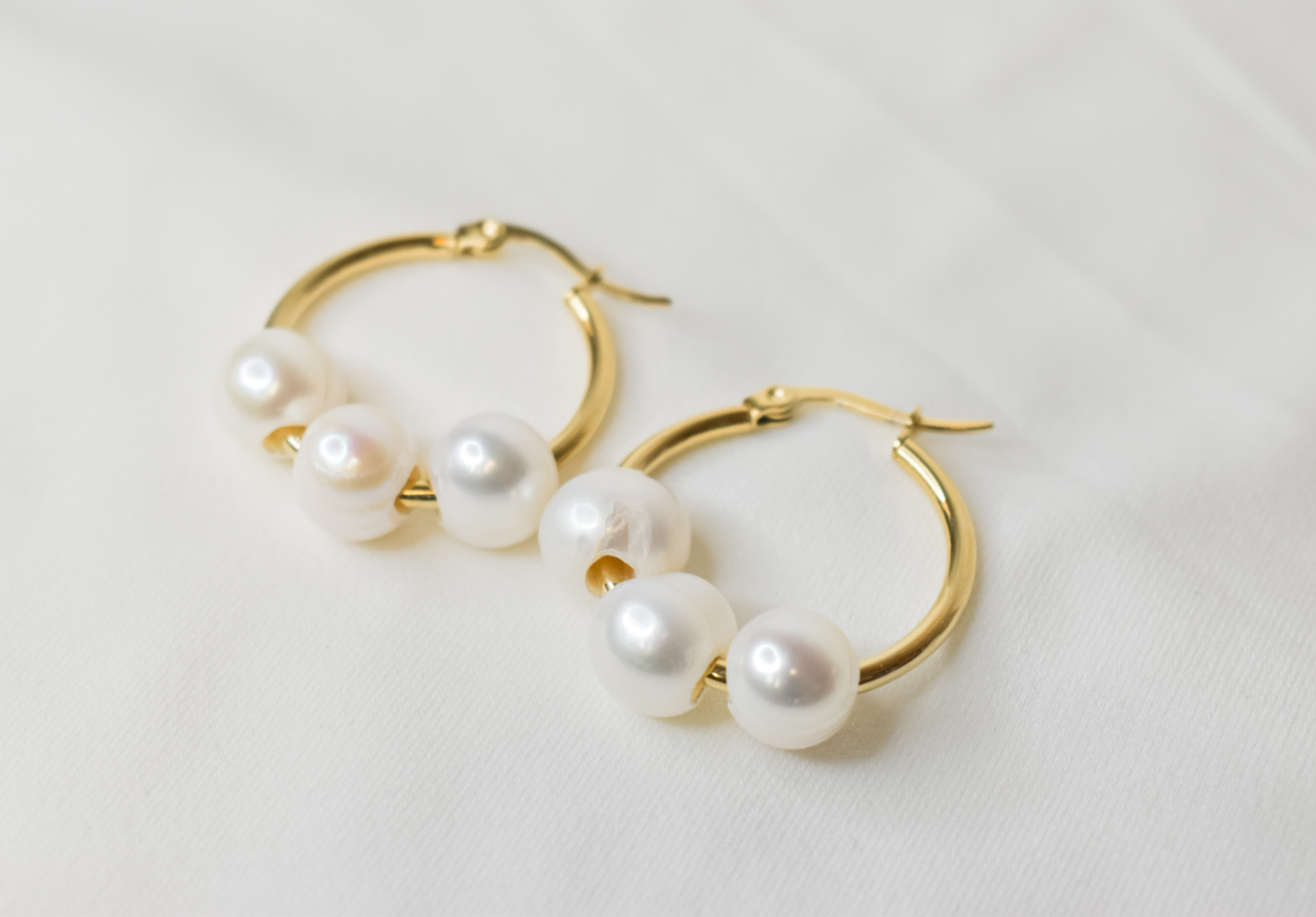 A timeless classic piece for your jewelry wardrobe, Luisa mini pearl hoops feature smooth natural white pearls and high-quality 14k goldfilled hoop earrings. Simple and perfect gift idea for her.