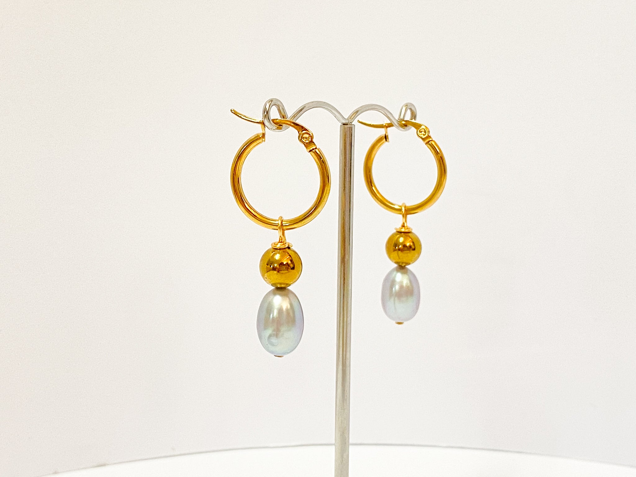 Luna features our grey and smooth surface freshwater pearls that hang delicately from the hoop earrings. Luna also meaning moon in Latin, reflects its grey colours on this gorgeous grey pearls. This is also part of the Luna Grey Pearl Set.