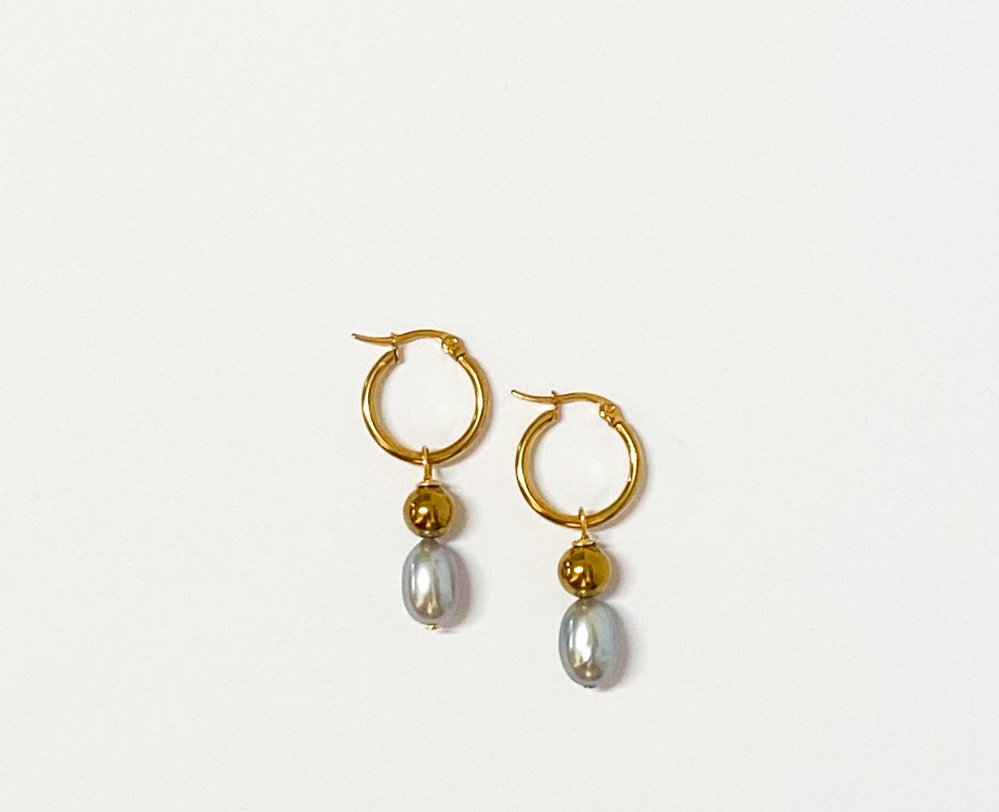 LUNA - Natural Grey Freshwater Pearl Earrings