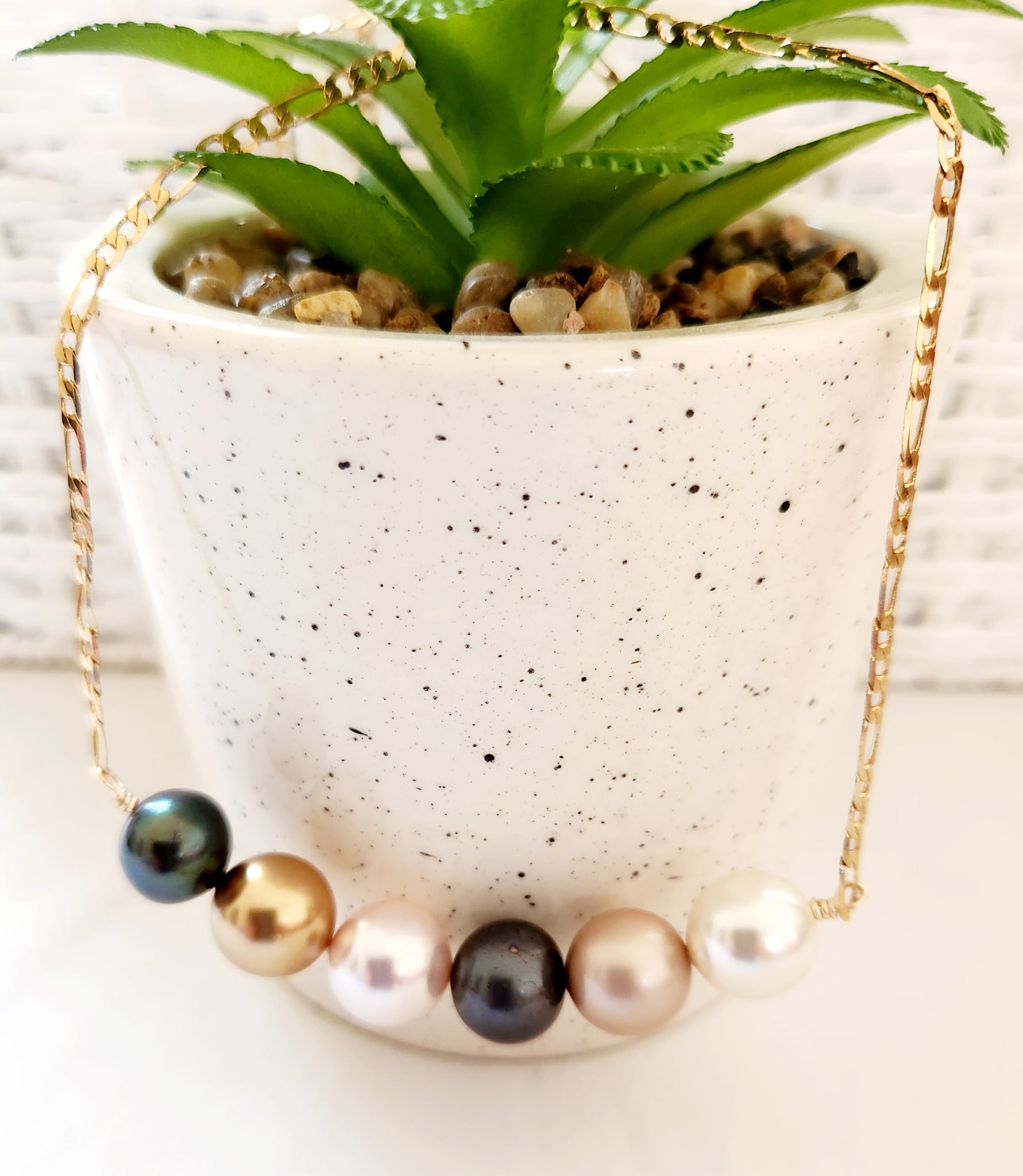GITA- 6 Multiple Pearls Horizontal Pendant Necklace