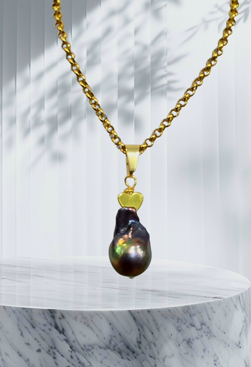 Stand out with this stunning, one-of-a-kind natural baroque pearl necklace. Paired with our premium quality chain, it's the perfect complement to any outfit. Treat yourself to a timeless piece or give it as a thoughtful gift.
