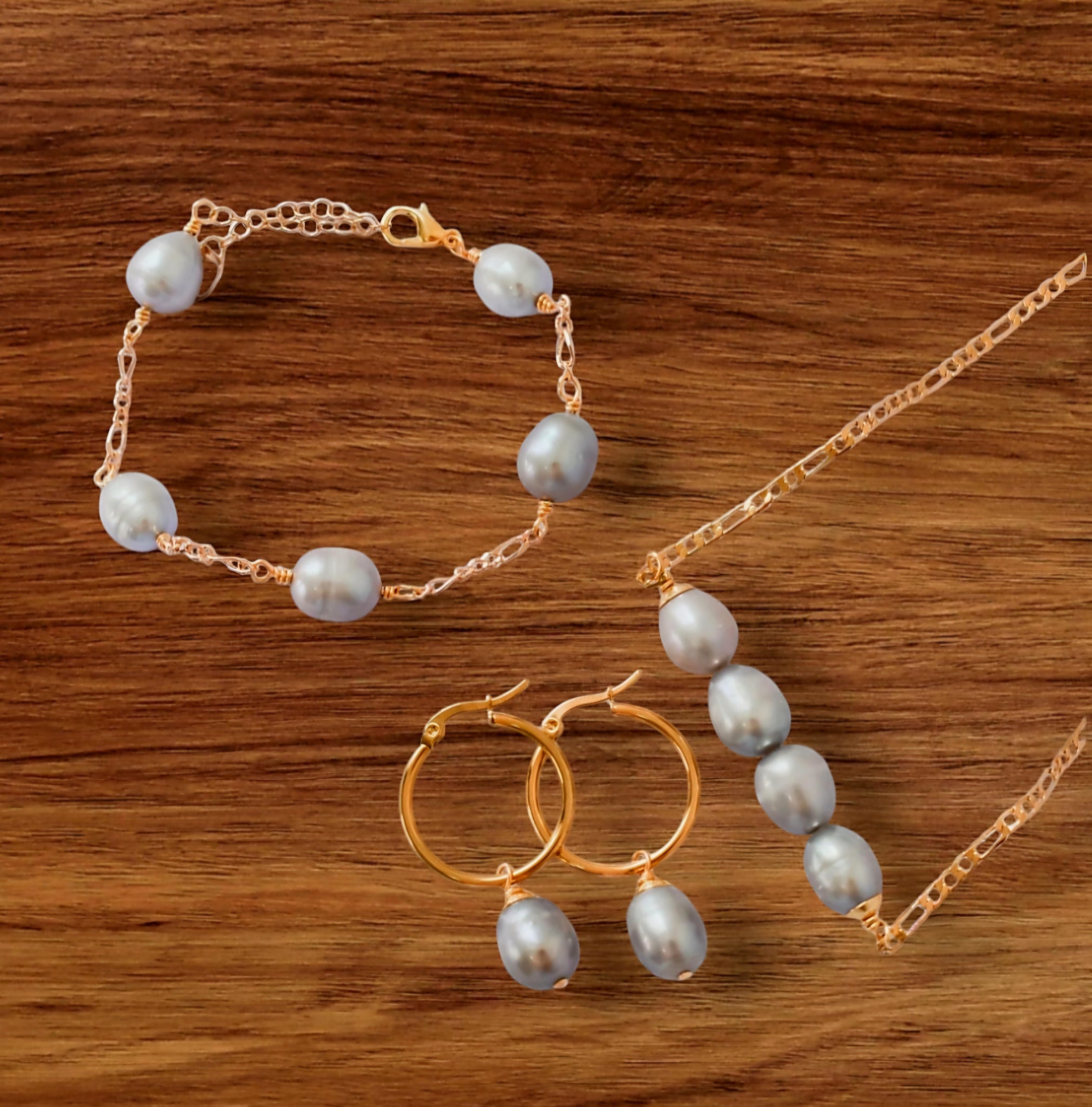 KALANI - Inspired Premium Silver Grey Natural Freshwater Pearl Set