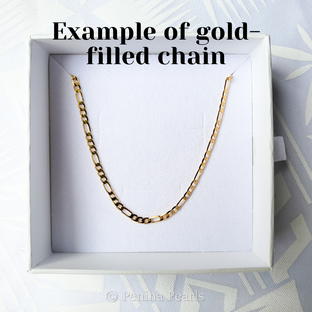 The set comes with a high quality 14k gold filled Figaro chain.