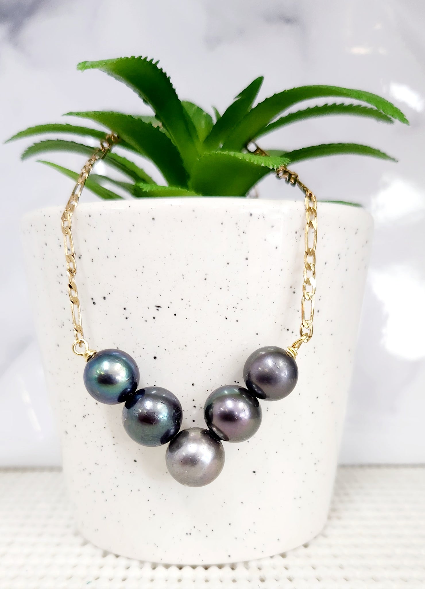 ALICE - 5 NATURAL TAHITIAN PEARL NECKLACE WITH GOLDFILLED