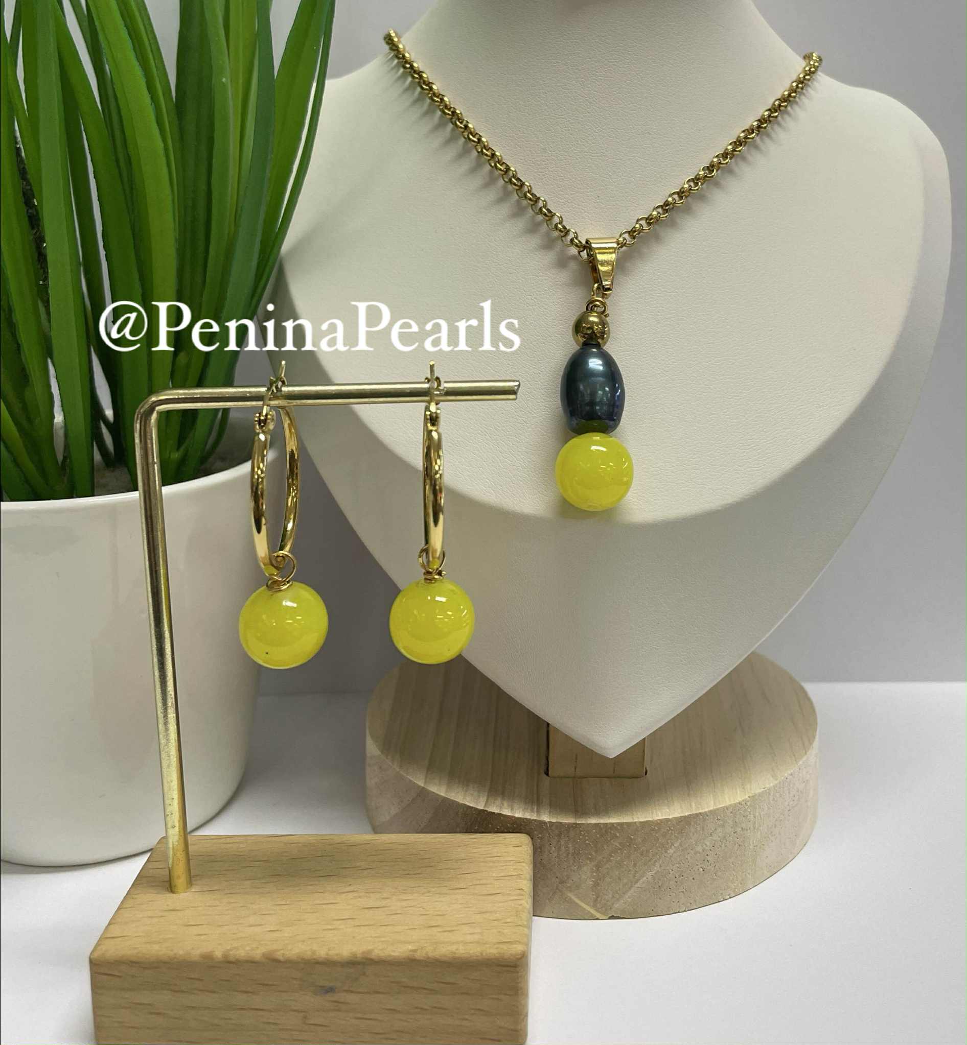 Aphina - Yellow Gem stone with Tahitian Pearl Set