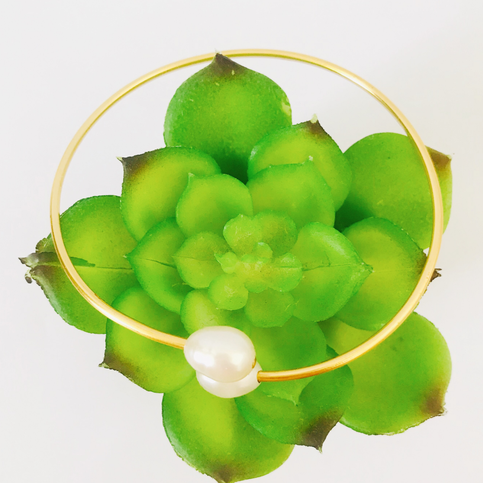 A simple yet timeless piece features our 10-11mm freshwater white pearls finely mounted on our 14k gold-filled bangle. An elegant piece that can be worn by itself or accessorised with our other white pearl collection. Handmade with love by Penina Pearls.