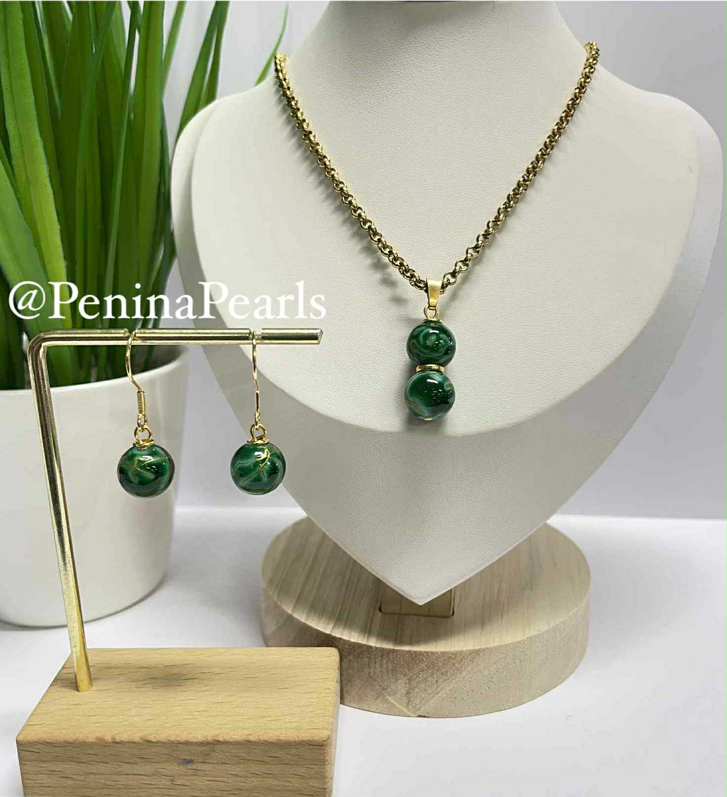Liora - Duo Green Marble Gem Stone Pearl Set