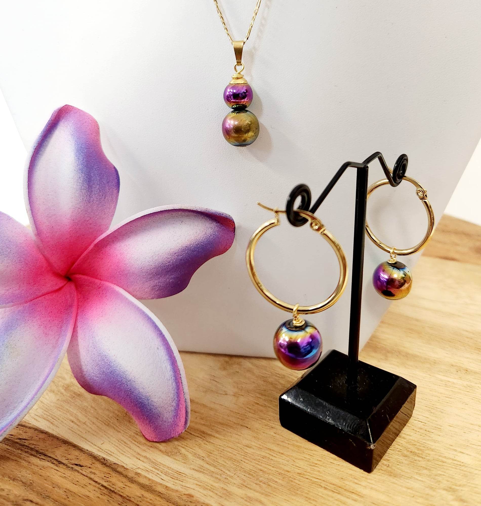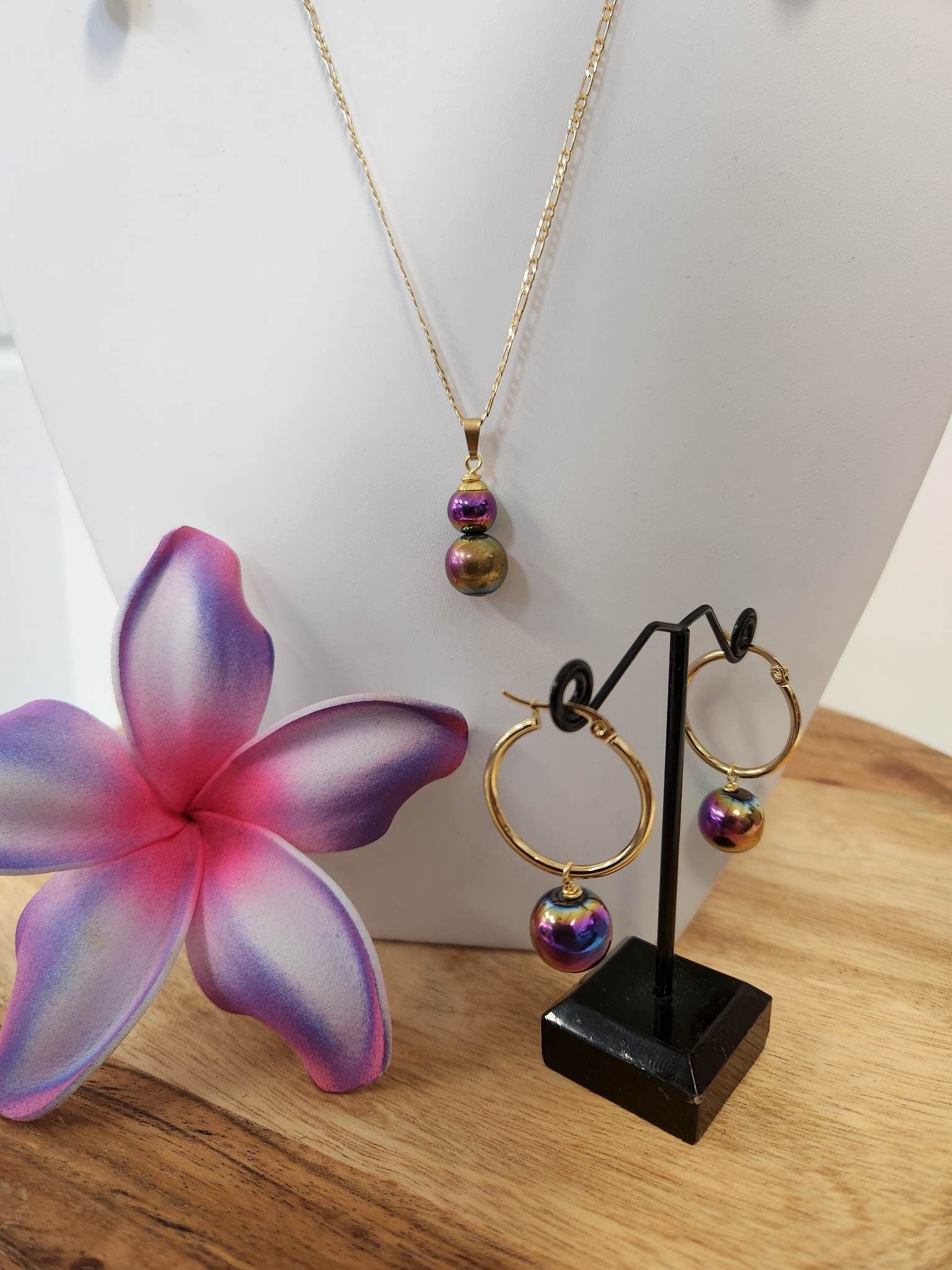 This glowing set features this spiral engraved pearls pattern with its matching earrings and necklace. This is an elegant and exclusive green pearl set to Penina Pearls that reminds you the beauty of green nature and natural creations.