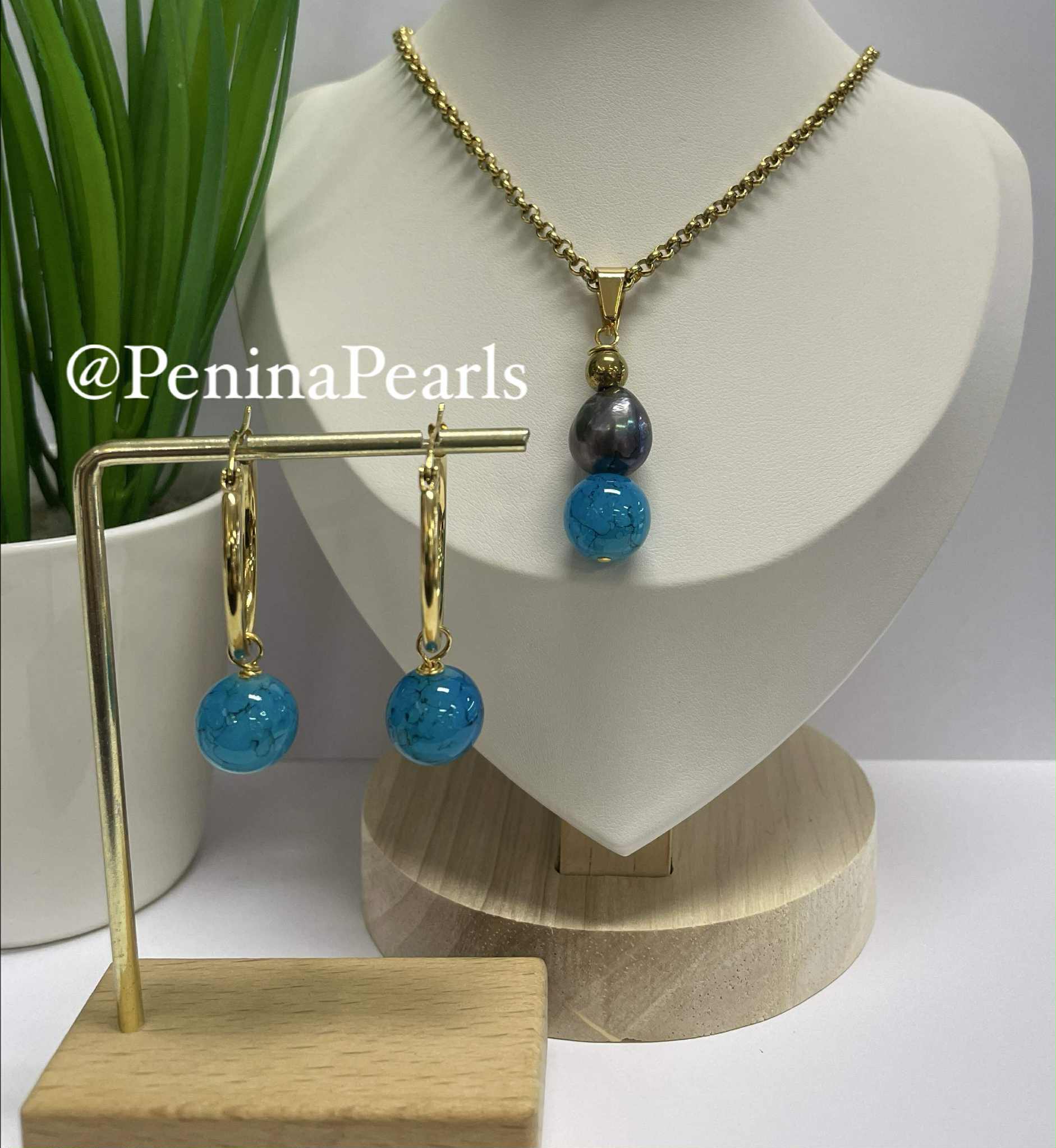 Zoe - Blue Gem Stone with Tahitian Pearl Set