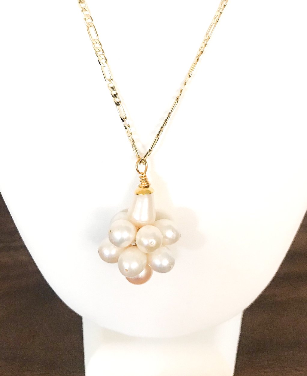 Following our Grace - White Clustered Pearl Set series is this pearl necklace, featuring our natural white clustered pearls, each grape pearl pendant is uniquely handmade by us. Perfect gift idea for your mum, daughter, friend and loved ones.