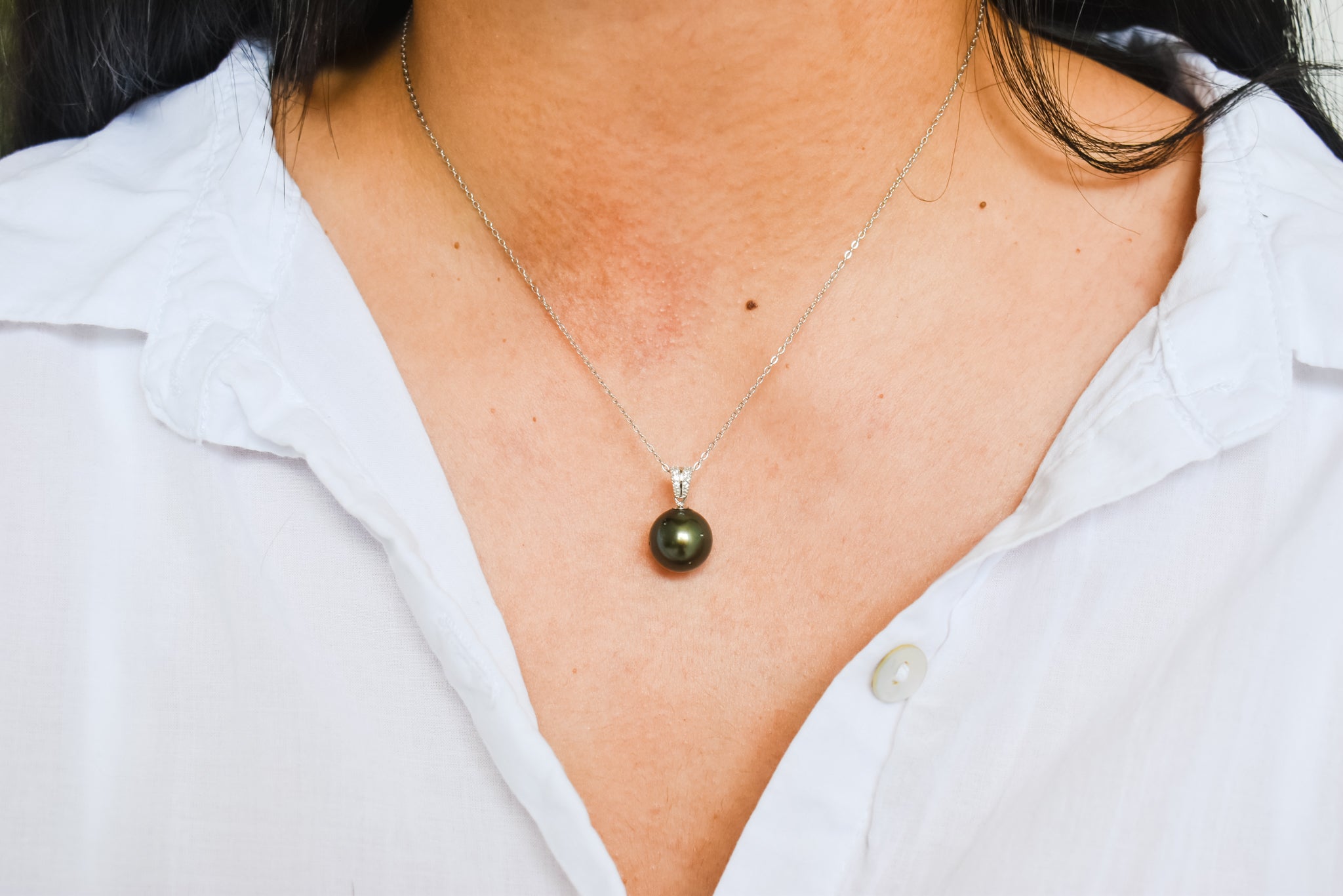 Pearl: A+ grade Tahitian pearl pendant around 12-13mm size.