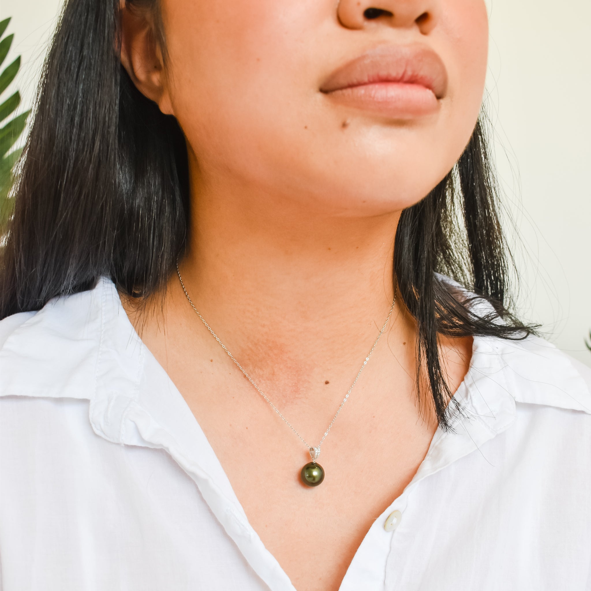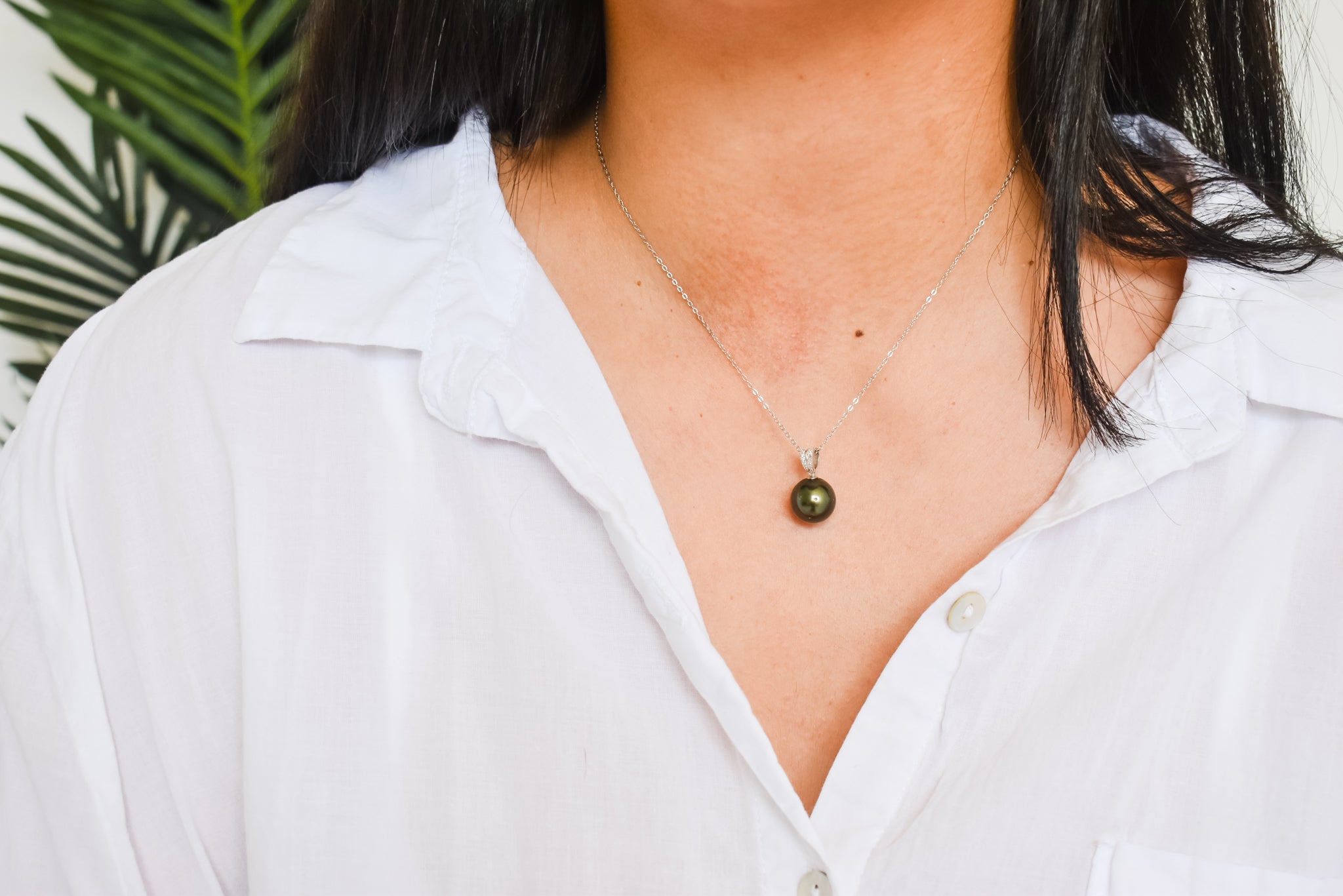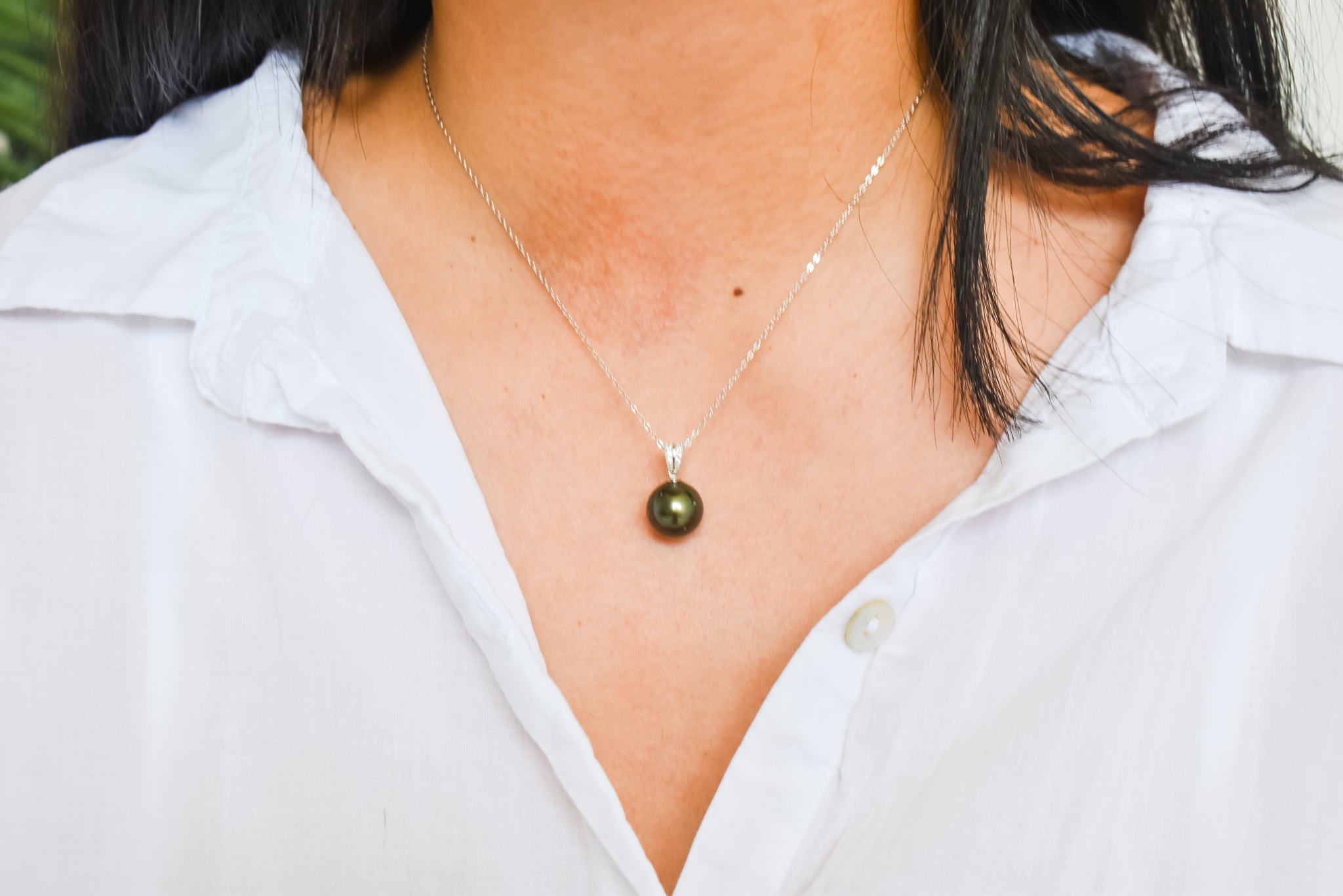 Introducing our exclusive sterling silver collection, featuring a natural Tahitian A+ grade pendant, perfectly round with a classic minimalist pendant in 925 genuine sterling silver and chain. This makes the perfect gift idea for her. Simple yet sophisticated.
