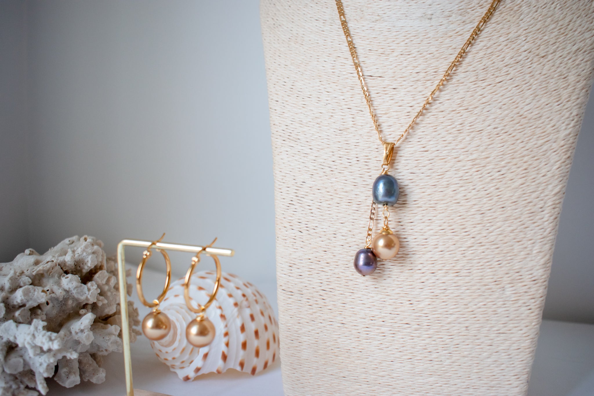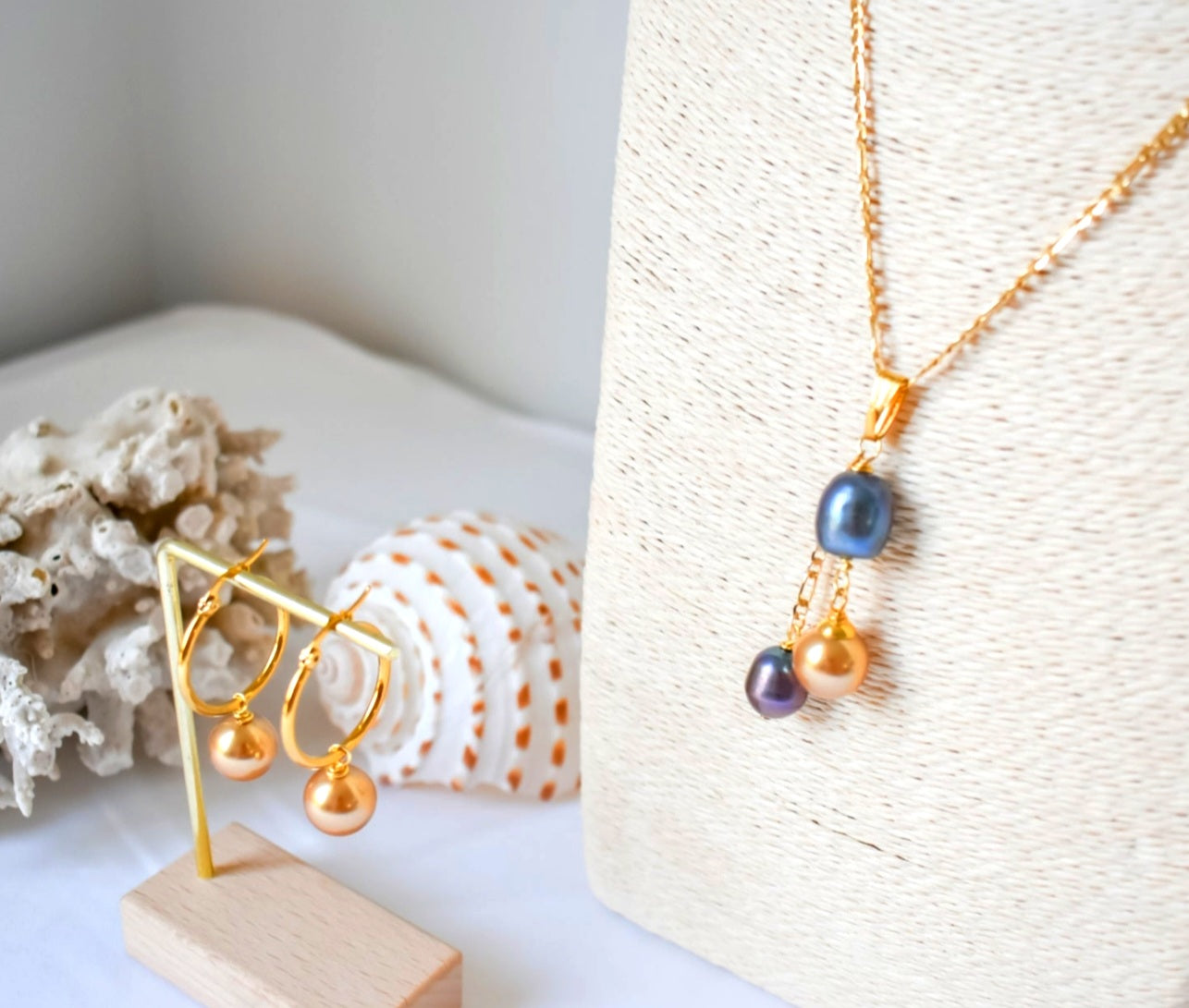 - Pearl colour: gold pearl and natural blue toned pearl.