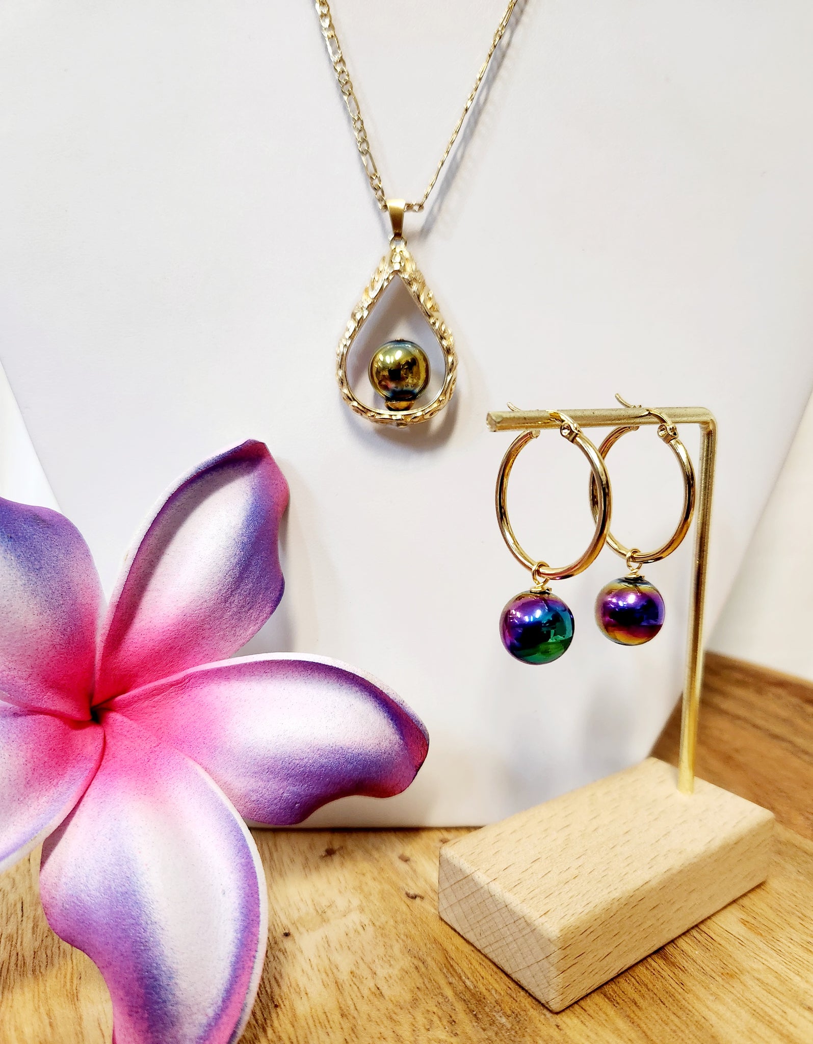 Hiva rainbow pearl set is the perfect statement pieces! Accented with unique glowing patterns to make a complete outfit for any occasion. It can be also use as a perfect gift for your dear loved ones
