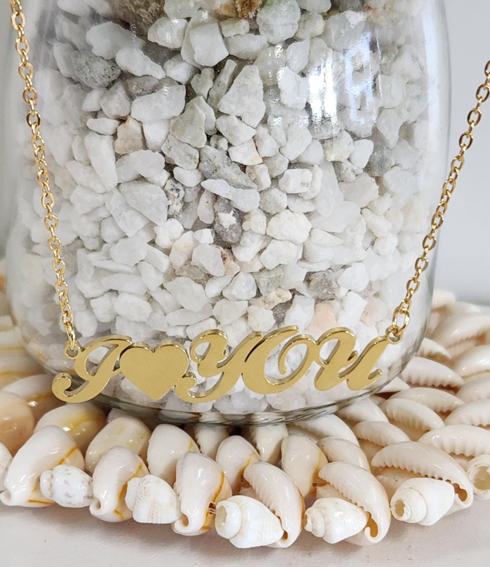 This "I♡YOU" personalised pendant necklace is the perfect gift idea that will be hard to forget. Our pendant is high quality gold-filled along with our chains. This can be worn on many occasions or on a day-to-day basis.