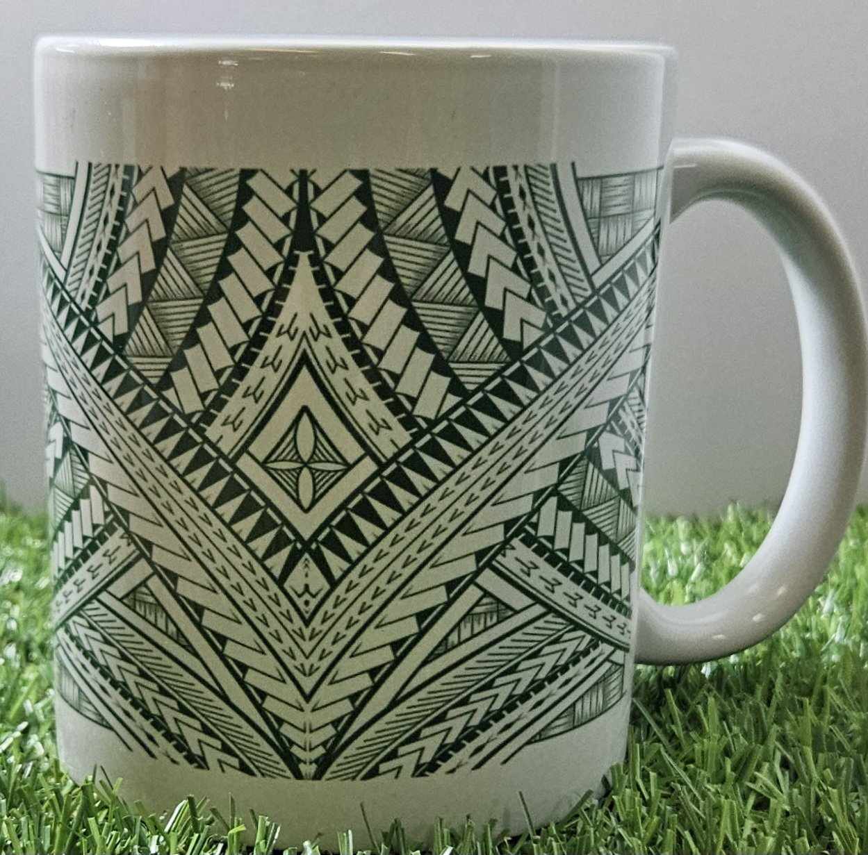 Each mug showcases intricate tribal motifs, echoing the beauty of handmade tapa cloth. From bold geometric florals to symbolic patterns, these designs are more than just art—they're a celebration of identity and heritage.